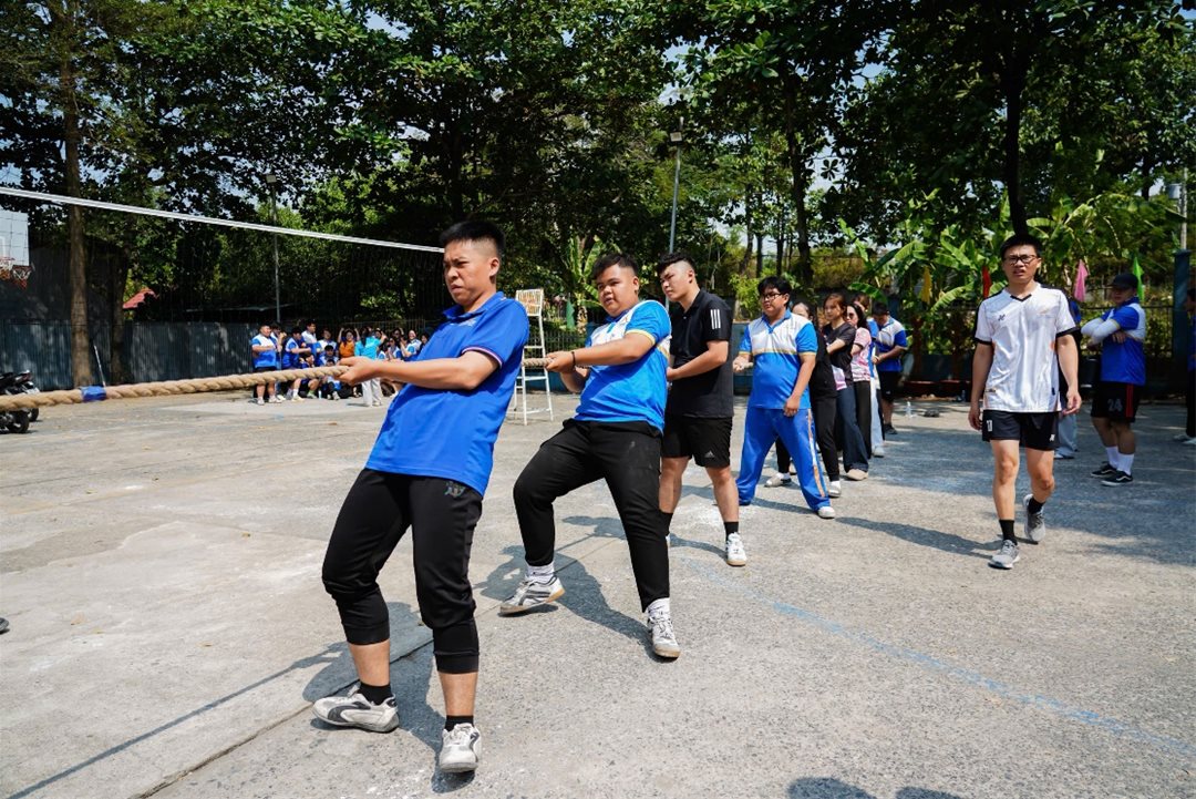 Trong khuôn khổ Hội thao sinh viên Trường Đại học Lạc Hồng, sinh viên Khoa Quản trị – Kinh tế Quốc tế đã để lại dấu ấn mạnh mẽ khi tham gia nội dung kéo co – môn thể thao không chỉ đòi hỏi sức mạnh mà còn là “thước đo” của tinh thần đoàn kết và sự phối hợp ăn ý giữa các thành viên.