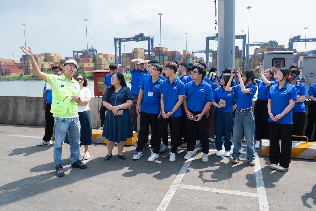 On the morning of November 14, 2025, the Faculty of Finance and Accounting organized a field trip and practical learning session for 43 students of class 25LG113 at Saigon Port – SSA International Container Service Joint Venture Company Limited (SSIT). This activity was conducted as part of the course “Introduction to Logistics and Supply Chain Management”, aiming to strengthen the linkage between academic training and industry practice, while providing students with direct exposure to the real working environment in the logistics sector.