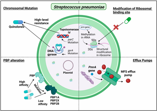 Cơ chế kháng thuốc chính của S. pneumoniae: